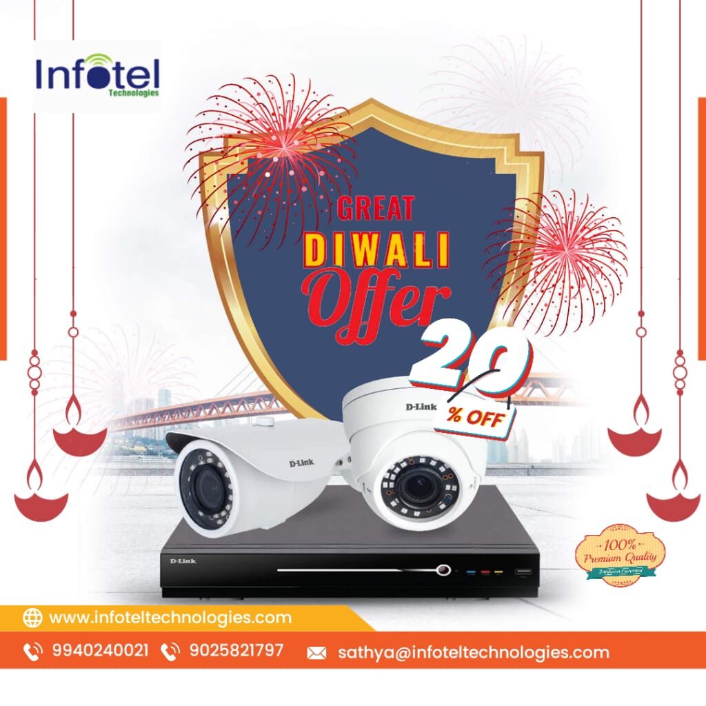 On the occasion Diwali, Infotel Technologies, Best Cctv Dealers in Chennai is offering you Cctv Security camera at a discounted rates. customers are kindly requested to avail this. For more information, Please visit our website